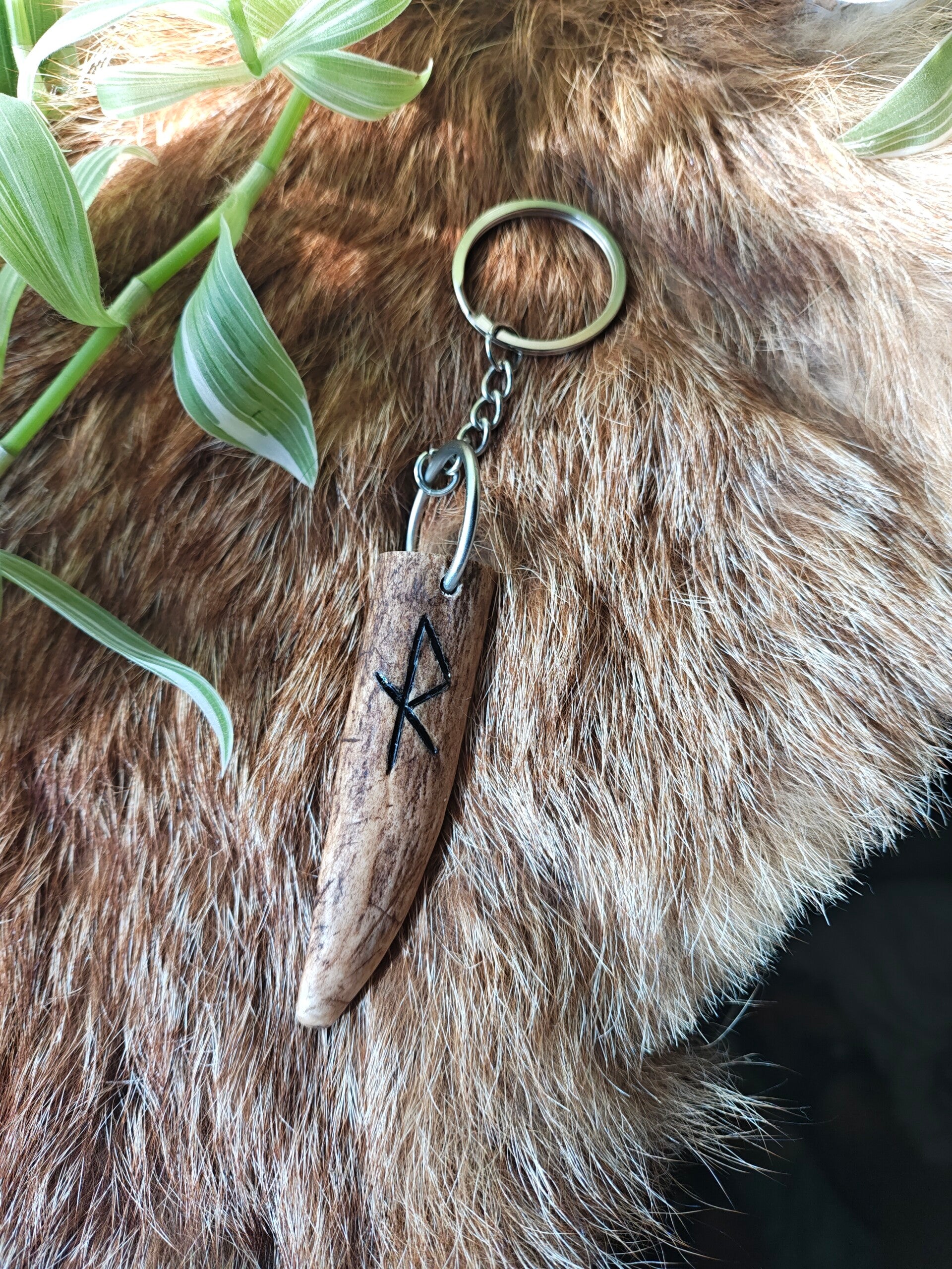 4 styles of fallow deer antler cut offs, each hand carved with a safe travel rune.